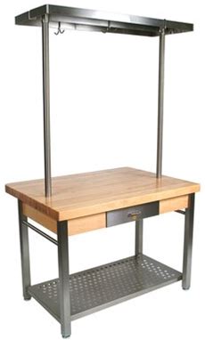 Cucina Grande Prep Table With Butcher Block Top Casters: Not Included, Pot Rack: 48" H X 60" W