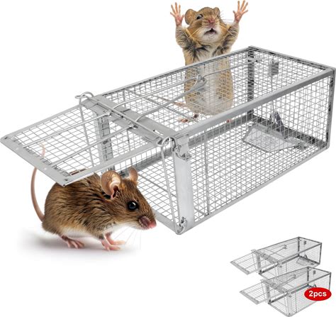 2-Pack Silver Live Animal Cage Trap Folding Humane Cat Trap For Mouse 14 X 5 X 6