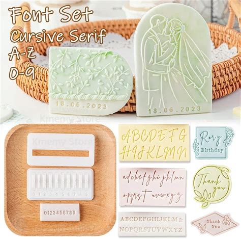 Uppercase Lowercase Script Font Set Alphabet A-Z Letter Number Symbol Signature Stamp Fondant Cake