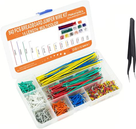 Makeronics 840 Pieces Jumper Wire Kit With 14 Lengths For Breadboard Prototyping Solder Circuits | Electronics Experiment | Arduino Or Raspberry Pi Or