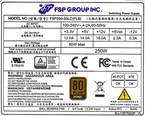 Fsp Group FSP250-50LC (Plb) 250 W Flex Atx 6LL1187504GP Yl 250W Power Supply