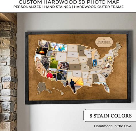 Personalized Photo Map USA With Hardwood Frame | Custom 3D Hardwood Picture Frame Travel 50 States America Photo Collage Photo Frame Gift