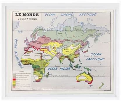Room & Board | Modern Vintage French School Map - Frame - Le Monde Vegetations | 34W 2D 39.5H