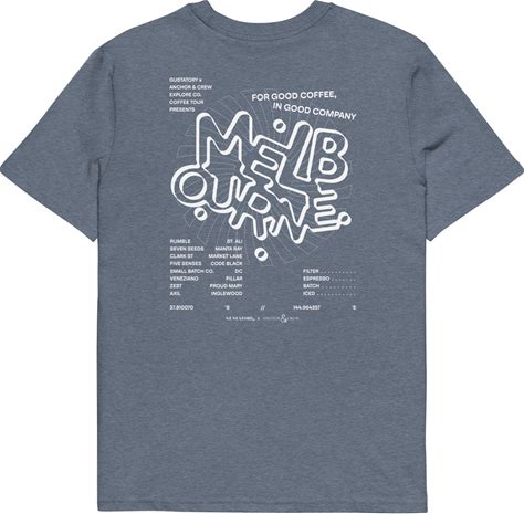 Dark Heather Blue Gustatory Melbourne Coffee Scene Organic Cotton Embroidered T-Shirt - Women | Extra Large | Anchor & Crew