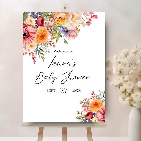 Spring Flowers, Modern Florals, Pink & Orange, Baby Shower Welcome Sign, Welcome Poster, Instant Download, Editable Template, Modern 015