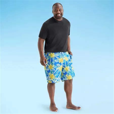 St. John's Bay Mens Floral Big And Tall Board Shorts | Yellow | Big Tall 2X-Large | Swimsuit Bottoms Board Shorts | Uv Protection