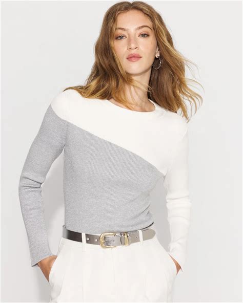 Women's Shimmer Colorblock Pullover Sweater In Ivory Size Large | White House Black Market