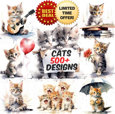 Cat Mega Bundle, 500+ Cat Clipart Bundle Watercolor Clipart Cat Lover Cats For Scrapbooking Kitten Clipart Bundle Clipart Set Digital