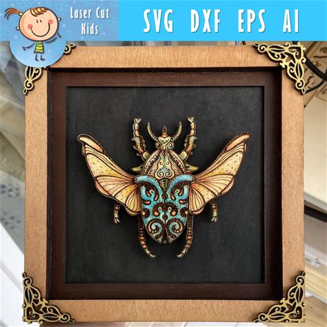 Beetle Wall Art, Decorative Insect Laser Cut File, DIY Bug Template For Craft Home Decor, Beetle SVG Glowforge Xtool, Digital Download