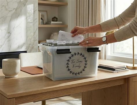 Personalized File Organizer Box Custom Document Storage System Labeled Folder Home Office Management Important Papers Family Records Tote
