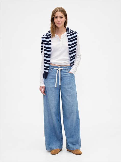 Women's Extra High Rise Stride Wide-Leg Jeans By Gap Jet Stream Blue Size 29