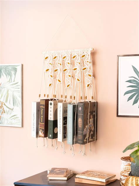 Macrame Leaf Book Shelf, Bohemian Wall Hanging, Book Storage