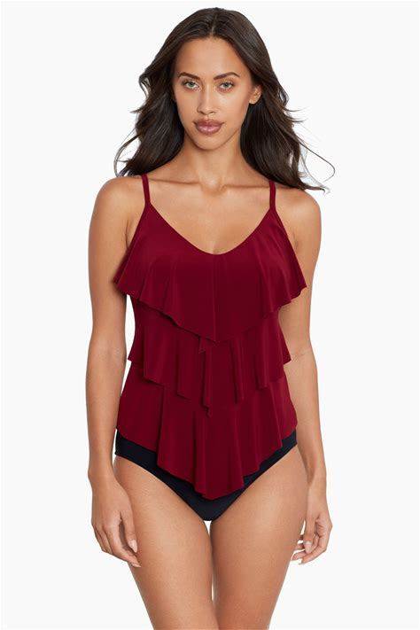 Magicsuit Women's Cascade Amira Tankini Top In Ruby, Size 10, Polyester/Spandex/Lycra
