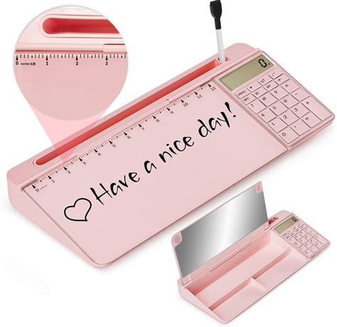 Desktop Glass Whiteboard With Mirror Calculator 12 Digit LCD Display Rul