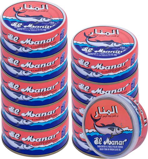 Solid Tuna In Virgin Olive Oil - Canned Tuna Fish In Cold Pressed Tunisian Olive Oil From El Manar - 10-Pack Of 160G Cans