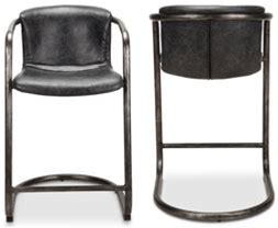 Freeman Bar Stool (Set Of 2) (Set Of 2) Seat Height: Counter Stool (25" Seat Height), Upholstery: Black Genuine Leather