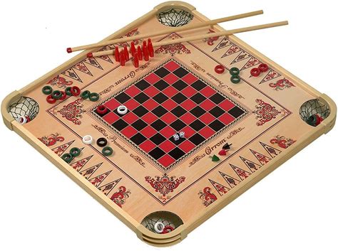 Carrom Board Checkers Set - Classic Indian Tabletop Family Board Game Set - Includes 11 Black 11 Brown Carrom Men Game Pieces, 2 Red Queens, 1 Acrylic Disc Carrying Case Pack Of 2