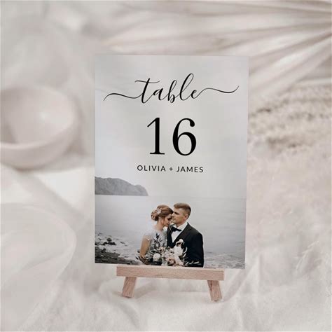 Elegant Simple Minimalist Script Photo Wedding Table Number