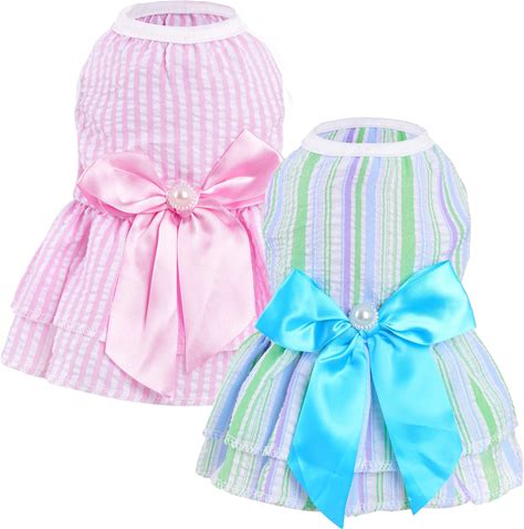 2 Pieces Dog Dresses Puppy Dogs Clothes Bowknot Cat Clothes Outfit Cat Dress For Small Dog Girl Pet Puppy (Pink Green, X-Small)
