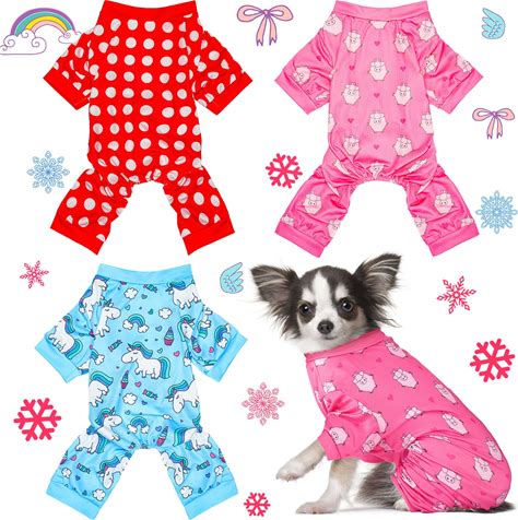 3 Pieces Dog Pajamas Puppy Soft Pets Clothes Dog Jumpsuit For Small Medium Large Pets Cute Apparel Bodysuits For Girl And Boy, 3 Styles(L Fits 7.7-9.9