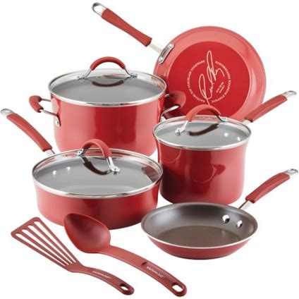 Rachael Ray Cucina 10-Pc. Porcelain Enamel Nonstick Cookware Set, Red
