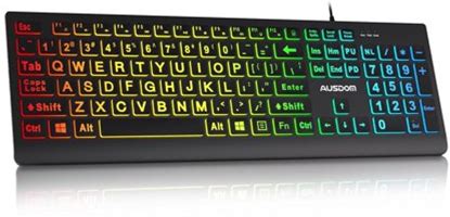 Ausdom Large Print Backlit Computer Keyboard,Quiet Wired USB Full Size Keyboard,Oversize Letters Keys Easy To See And Type,Black