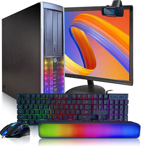 HP Elite RGB Desktop Computer PC, Intel Core i7 Up To 3.8Ghz, 16G RAM, 512G SSD, New 22 Inch FHD LED Monitor, RGB Keyboard And Mouse, RGB BT Sound Bar