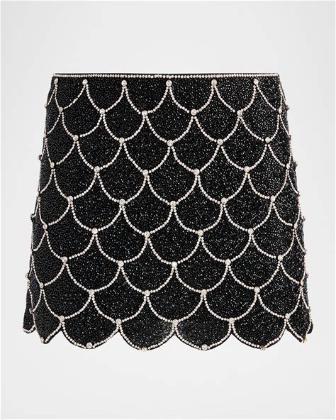 Alice + Olivia Rubi Embellished Scallop Micro Mini Skirt, Black/Silver, Women's, 6, Skirts Mini Skirts