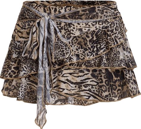 BEAUDRM Women's Y2K Cheetah Skirt Ruffle Leopard Mini Micro Skirt Sexy Mesh Going Out Party Rave Clubwear