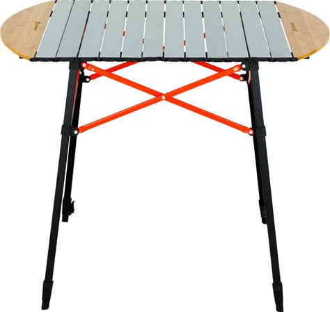 Lippert Bamboo/Hammer Grey Roll Top Camping Table With Powder-Coated Aluminum Top/Frame, Durable Bamboo Edges, Foldable Design, Adjustable Legs,