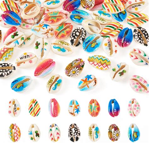 Beadthoven 56Pcs Cowrie Shells For Crafts - 14 Colors Natural Seashells Beads For Jewelry Making, Summer Beach Sea Shells For Necklace Bracelets, Fish
