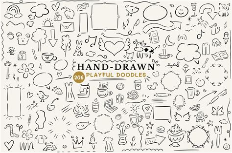 Hand Drawn Doodle SVG Bundle Line Art PNG | Planner Doodles Clipart Hand Drawn Elements, Vector Elements | Arrows, Animals, Frames, Plants