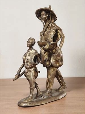 Vintage African Bronze Farmer Figurine - Lost Wax Cast Sculpture