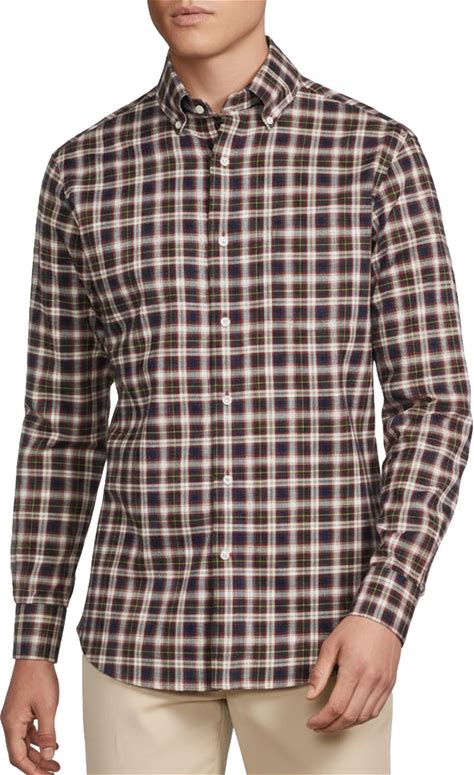 Cremieux Blue Label Washed Oxford Traditional Plaid Long Sleeve Woven Shirt, Mens, L, Cabernet