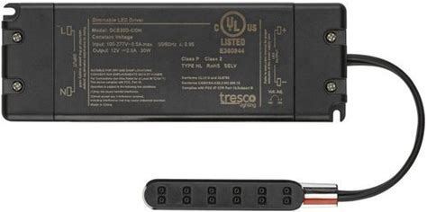 Tresco By Rev-A-Shelf L-DCE30D-CON-1, Tresco 12V/60W Dimmable Constant Current LED Driver With 6-Way Distributor, Black