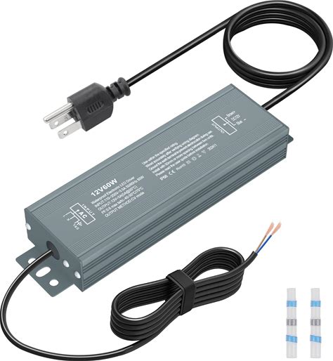 12V LED Driver 60W 10.8ft 12V LED Power Supply 5A 110V AC To DC Converter 12Volts Transformer Waterproof IP68 Ultra Thin Adapter 12 V 5A Power Supply