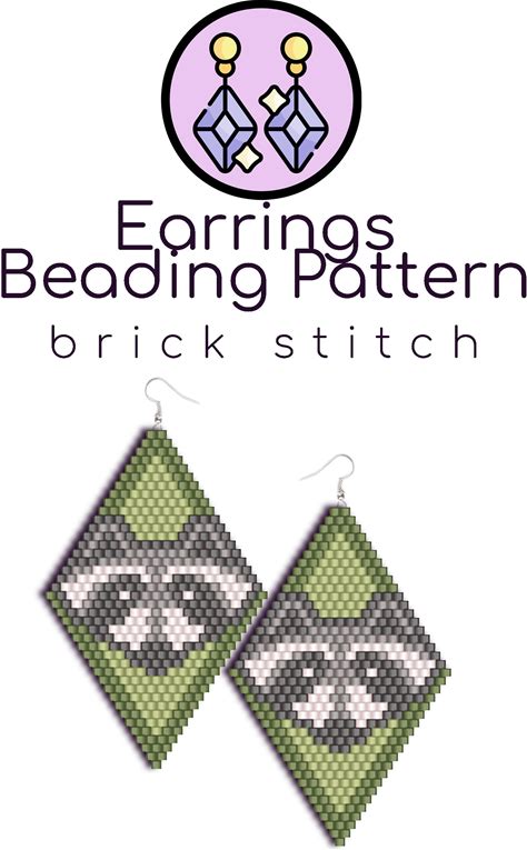 Raccoon Beaded Earrings Pattern | Brick Stitch Pattern With Word Chart |