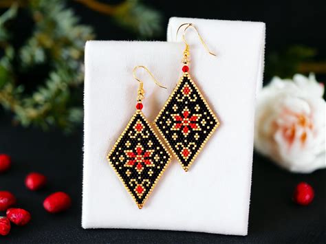 Brick Stitch Pattern, Native Seed Bead Earrings Pattern, Beading Pattern, Brickstitch Pattern, Jewelry Making, Do It Yourself, Pdf Download