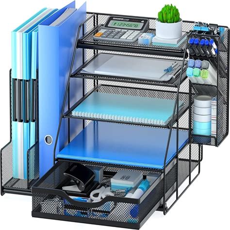 Fenge Desk Organizer, 4 Tier File Organizer For Desk - 14.6X10.5X12.1 Inches - Black