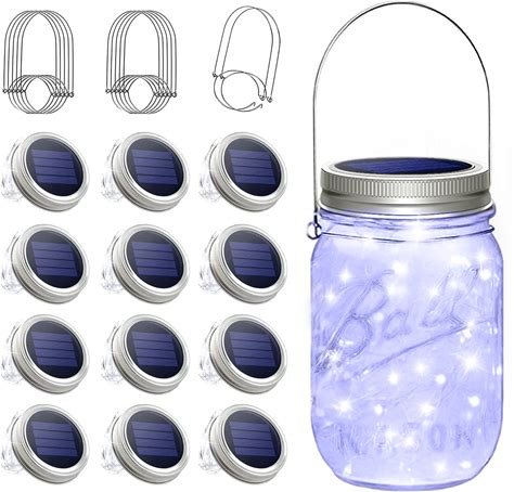 Sunkite Solar Mason Jar Lights, 12 Pack 30 LED Waterproof Fairy Firefly Jar Lids String Lights With Hangers(NO Jars), Patio Yard Garden Wedding