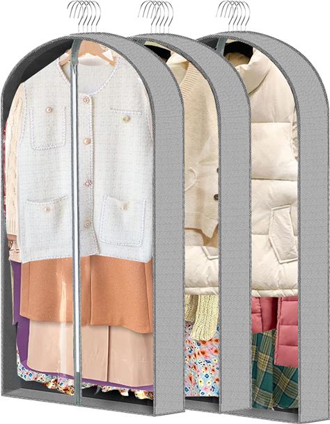 ZYKOYA 3 Pcs Garment Bags, 40" & 50" PEVA Moth-Proof Breathable Dust Cover, Hanging Clothes Covers With Bedroom, Suits, Padded Clothes, Shirts Prevent