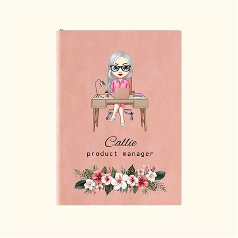Personalised Floral Cartoon Business Character Leather Cover Notebook - Appreciation Office Gift For Colleagues Leaders
