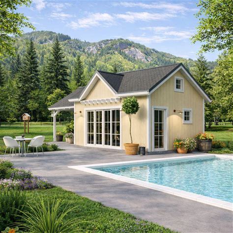 Scandinavian Pool House Plan: Modern Outdoor Living Design (Pre-Build Package)