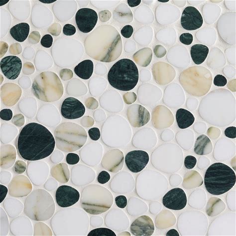 Viviano | Foresta Thassos Green Blend Precise Cut Pebble Mosaic Tile, 13 X 13, Marble, 9.500 Thick - Floor & Decor | 101068708